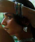 Crafted using a rare silver fuming technique, this pair of bangles captures the fleeting beauty of the sky at its two most poetic hours, dawn and dusk. The set includes two bangles: one clear, one deep.